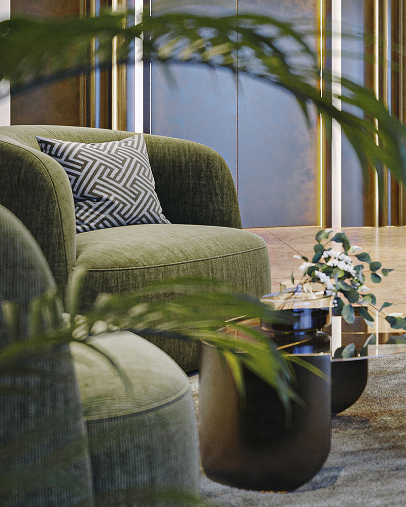 Le sedute avvolgenti, il verde e i volumi verticali destinati ai Lockers trasformano questo spazio in un luogo di passaggio che diventa subito casa, dove comfort e immagine dialogano in perfetto equilibrio.